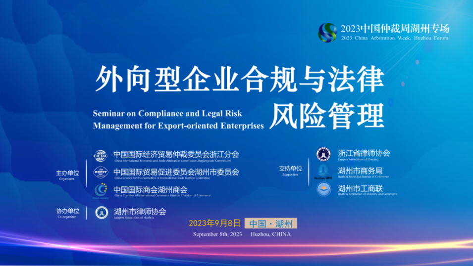 在全球化的商貿(mào)投資環(huán)境中,隨著我國經(jīng)濟主體“走出去”由量到質(zhì)的發(fā)展方向轉(zhuǎn)變,外向型企業(yè)面臨著日益復(fù)雜和多樣化的合規(guī)需求與法律風(fēng)險,包括跨境貿(mào)易、投資、管制合規(guī)、知識產(chǎn)權(quán)合規(guī)、國際法與外國法合規(guī)、違約風(fēng)險管理等。為幫助企業(yè)加強法律風(fēng)險理解與識別、提高合規(guī)與法律風(fēng)險管理能力,擬在浙江省湖州市舉辦“外向型企業(yè)合規(guī)與法律風(fēng)險管理”研討會。