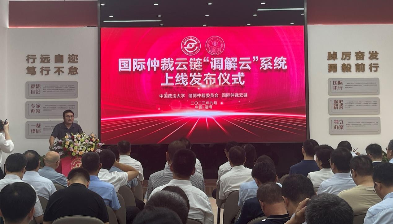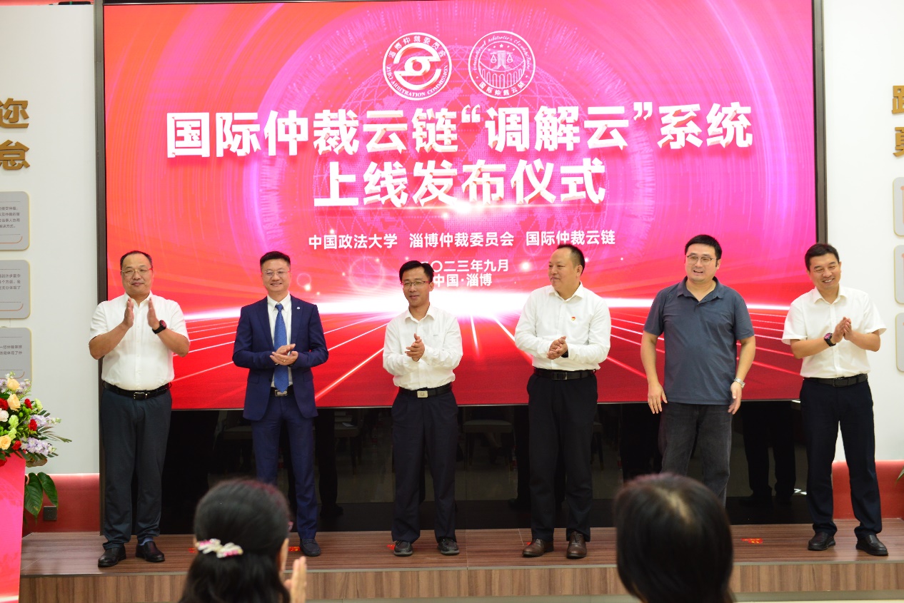 山東省司法廳一級調(diào)研員李世敏,淄博仲裁辦黨組書記、主任張公博,淄博仲裁辦黨組成員、副主任閆世學,中國政法大學副教授、國際仲裁云鏈理事會副理事長周蔚,中國政法大學網(wǎng)絡安全和信息化辦公室副主任張軼舸,泰杭律師事務所主任、國際仲裁云鏈理事會理事汪政共同為調(diào)解云系統(tǒng)上線揭牌。
