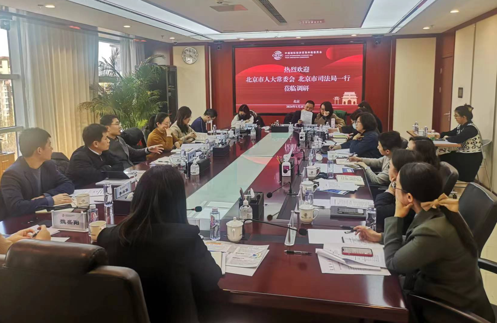 2024年1月25日下午,北京市人大常委會、北京市司法局一行到訪貿(mào)仲,就北京推進國際商事仲裁中心建設及有關立法工作進行調(diào)研。中國國際經(jīng)濟貿(mào)易仲裁委員會(以下簡稱“貿(mào)仲”)仲裁院副院長解常晴接待了到訪人員。