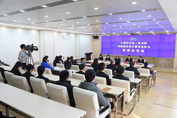 3月6日,遼寧省大連市中級人民法院召開仲裁裁決執(zhí)行案件白皮書新聞發(fā)布會,對外發(fā)布《大連市中級人民法院仲裁裁決執(zhí)行案件白皮書(2020年-2023年)》(以下簡稱《白皮書》)。大連中院黨組成員、副院長韓科軍出席會議,大連仲裁委員會相關負責同志應邀參會,部分人大代表、政協(xié)委員、媒體代表親臨現(xiàn)場,發(fā)布會通過大連中院微信視頻號全程直播。