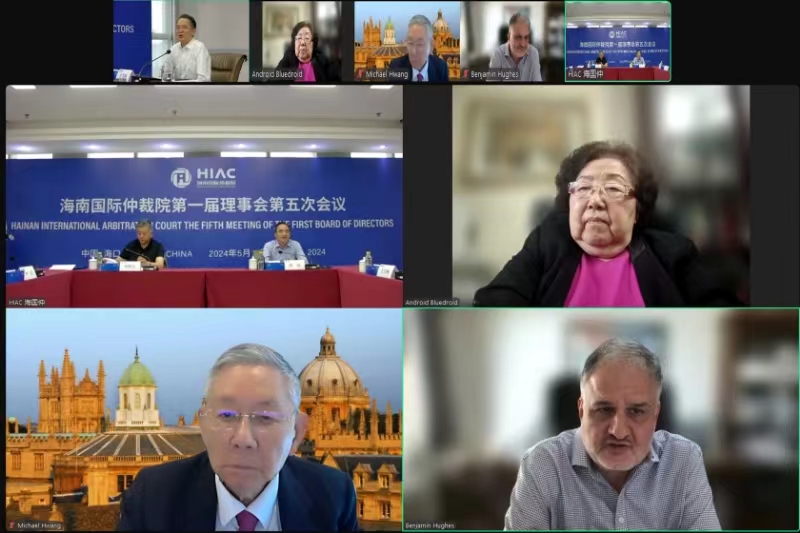 5月10日,海南國際仲裁院第一屆理事會第五次會議在??谡匍_。海南國際仲裁院理事長王雪林主持會議,張月姣、黃進、劉敬東、尹田、符瓊芬、王琦、約翰·阿齊爾·埃勞(Johan Achiel Erauw)(比利時)、黃錫義(Michael Hwang)(新加坡)、本杰明?休斯(Benjamin Hughes)(美國)、范凱杰(中國香港)等理事以“線上+線下”方式出席會議。