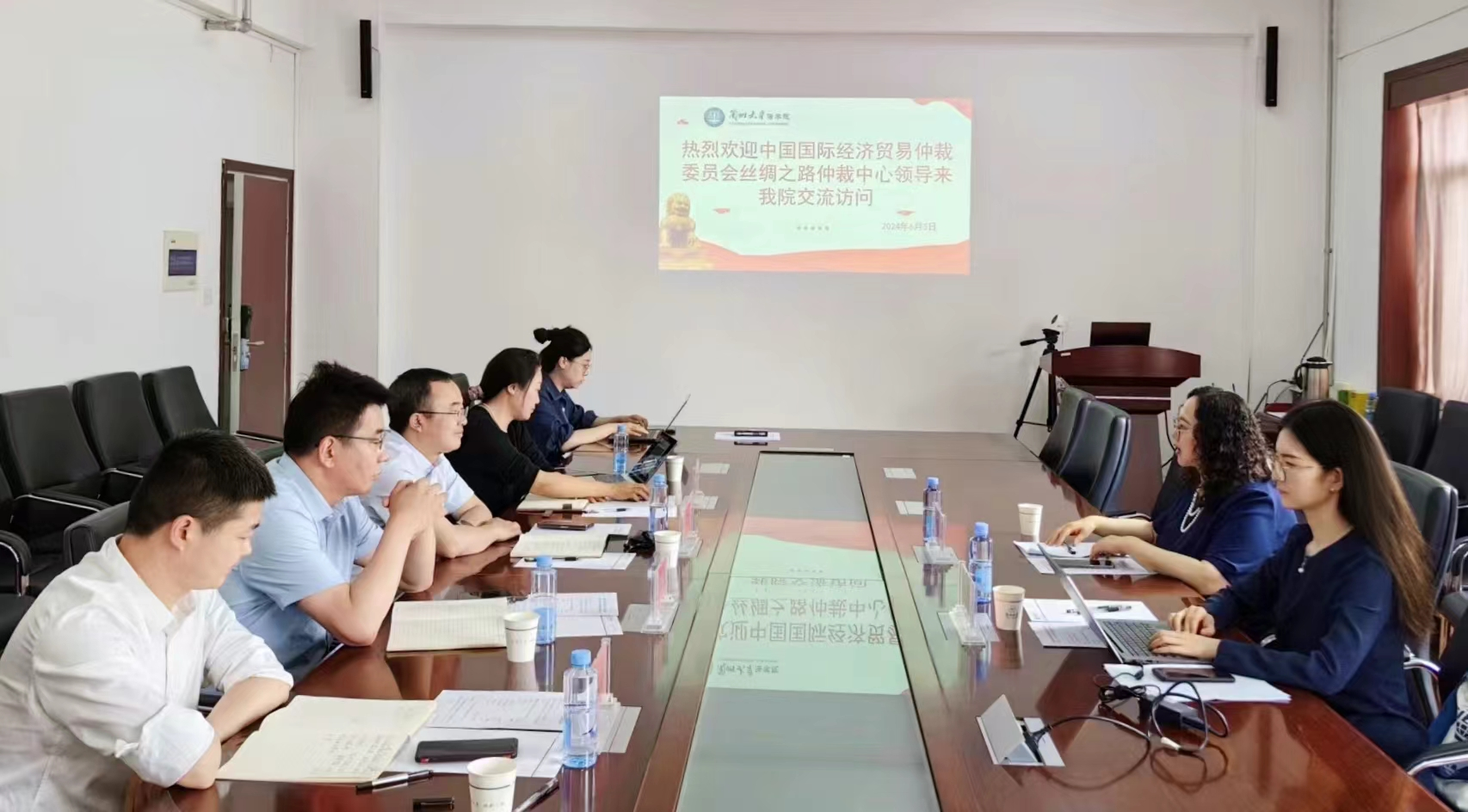 6月3日,中國(guó)國(guó)際經(jīng)濟(jì)貿(mào)易仲裁委員會(huì)絲綢之路仲裁中心(簡(jiǎn)稱(chēng)“貿(mào)仲絲路中心”)副秘書(shū)長(zhǎng)蔣紅梅一行赴蘭州大學(xué)法學(xué)院調(diào)研,蘭州大學(xué)法學(xué)院黨委書(shū)記涂思龍,副院長(zhǎng)韓雪梅,黨委副書(shū)記賀軍文,黨委副書(shū)記、副院長(zhǎng)孫龍宇會(huì)見(jiàn)接待,雙方圍繞“支持涉外法治人才培養(yǎng)、服務(wù)‘一帶一路’高水平對(duì)外開(kāi)放”進(jìn)行座談交流。