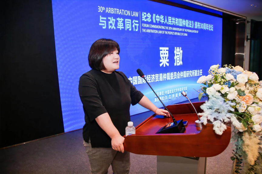 圖為中國(guó)國(guó)際經(jīng)濟(jì)貿(mào)易仲裁委員會(huì)研究所副主任粟撒發(fā)言
