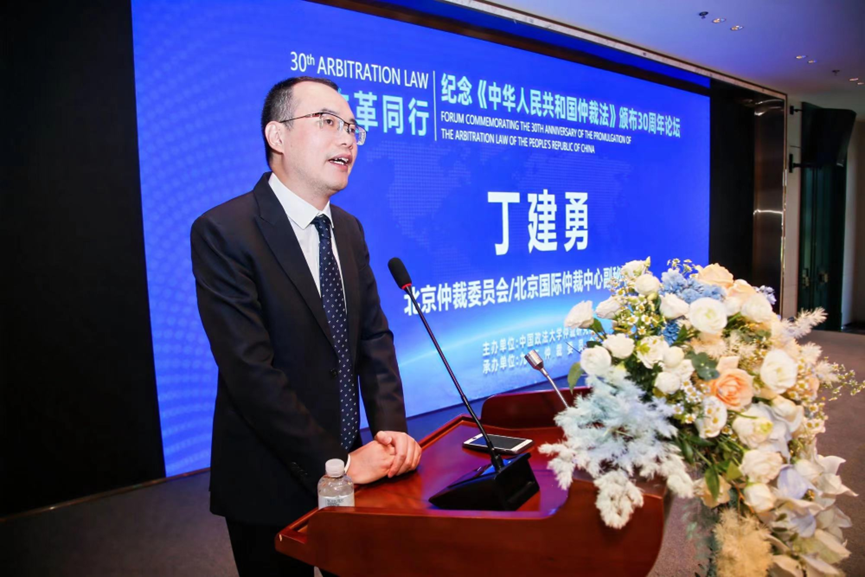 圖為北京仲裁委員會(huì)副秘書長(zhǎng)丁建勇發(fā)言