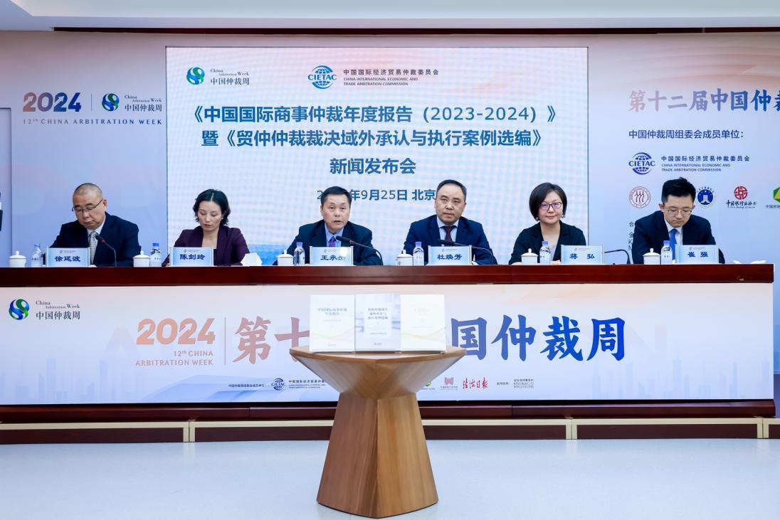 9月25日,中國(guó)國(guó)際經(jīng)濟(jì)貿(mào)易仲裁委員會(huì)(以下簡(jiǎn)稱“貿(mào)仲”)在北京召開新聞發(fā)布會(huì),貿(mào)仲副主任兼秘書長(zhǎng)王承杰在會(huì)上發(fā)布《中國(guó)國(guó)際商事仲裁年度報(bào)告(2023-2024)》(以下簡(jiǎn)稱《2023-2024年度報(bào)告》)和《貿(mào)仲仲裁裁決域外承認(rèn)與執(zhí)行案例選編》(以下簡(jiǎn)稱《執(zhí)行案例選編》)。貿(mào)仲黨委書記兼副秘書長(zhǎng)徐延波主持發(fā)布會(huì)。