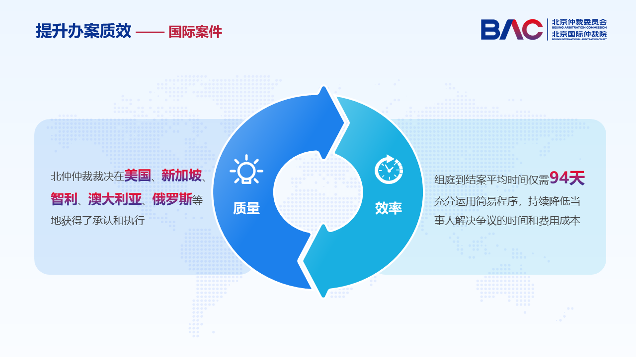 多年來,北仲不斷完善具有國際水準(zhǔn)的仲裁規(guī)則與案件管理體系,最大限度地滿足國際當(dāng)事人的爭議解決需求。