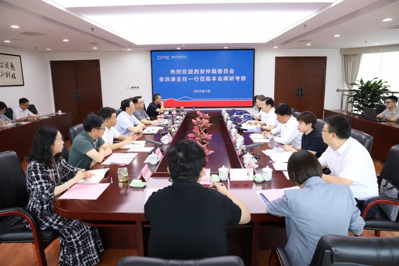 7月1日,西安仲裁委員會李洪濤主任率隊到訪重慶仲裁委員會(重慶國際商事仲裁院)。重慶仲裁委員會副主任齊文、胡軼陪同參觀了立案大廳、仲裁庭審區(qū)及智慧仲裁庭等辦公場所。