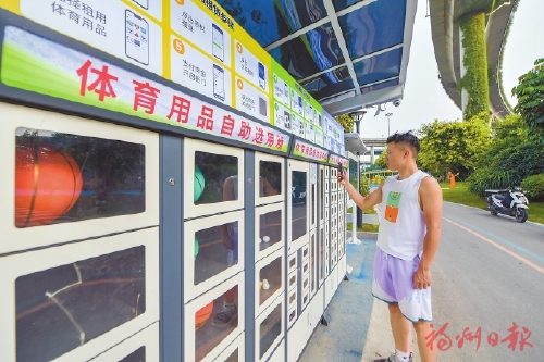 市民在馬尾區(qū)智慧體育公園內(nèi)使用體育用品自助選用箱。本報記者 林雙偉攝