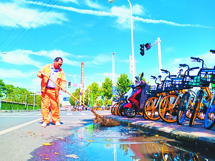 烈日下,“城市美容師”仍然堅守崗位,用汗水保障城市干凈整潔。