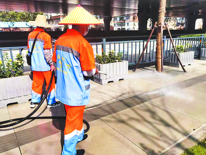 “因為中午氣溫高,我們強化了清晨作業(yè)力度,趁著氣溫不高,對責任路段進行徹底清掃。過了中午后,一般僅開展巡視和撿拾垃圾工作,盡量避免長時間暴露在烈日下作業(yè)?!被窦t說,“另外,為了減輕環(huán)衛(wèi)工人工作負擔,我們增加了洗掃車、清洗車、沖洗車等機械化車輛的作業(yè)頻次,每天避開交通高峰期,分早、晚班次開展機械化作業(yè)?!?/p>