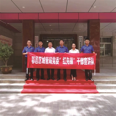 “我去蔣村街辦走親戚,在那里也發(fā)現(xiàn)了著裝整齊的城管隊員了!”8月,鄠邑區(qū)西街小學(xué)接孩子回家的家長們興高采烈地議論著。與西街小學(xué)一墻之隔的區(qū)城管局,此刻黨旗飄揚(yáng),格外耀眼。