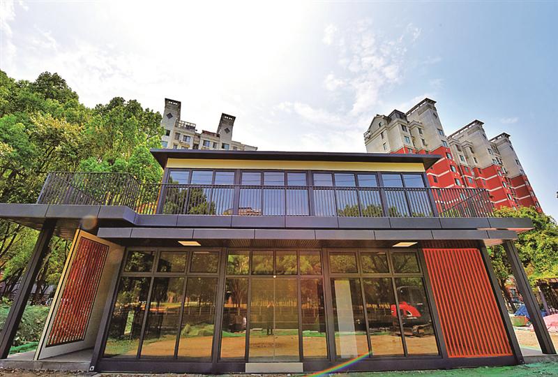 新吳區(qū)住建局相關(guān)負(fù)責(zé)人介紹,城市驛站建筑面積384平方米,是一座多功能的裝配式建筑,其基礎(chǔ)采用混凝土預(yù)制基礎(chǔ)標(biāo)準(zhǔn)生產(chǎn),建筑整體熱浸鍍鋅防腐,內(nèi)外立面全部采用干法施工,主體結(jié)構(gòu)件采用榫卯工藝進(jìn)行裝配,施工現(xiàn)場(chǎng)無(wú)焊接處理,構(gòu)件連接緊密,結(jié)構(gòu)輕巧,保證建筑使用壽命。相較于傳統(tǒng)驛站需要3-6個(gè)月的建設(shè)周期,該驛站采用類似“搭積木”裝配式模塊化建設(shè),所有零部件采用工廠標(biāo)準(zhǔn)化生產(chǎn),組裝過(guò)程不產(chǎn)生建筑垃圾與揚(yáng)塵,施工周期僅為45天,極大地降低了安裝過(guò)程中對(duì)周邊環(huán)境、居民生活的影響。