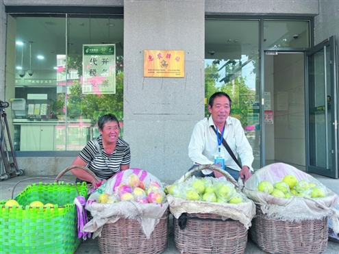 “利用營業(yè)所門口臺階上的空間,既可以讓提籃族擺攤,又不影響正常的交通?!痹诂F(xiàn)場記者看到,一塊寫著“惠農(nóng)驛站”的牌子掛在了營業(yè)所的外墻上,牌子下面五六個提籃一字排開,兩位提籃族正在售賣。中國郵政儲蓄銀行七里山營業(yè)所負(fù)責(zé)人張超告訴記者,提籃族在這里售賣,既可以防曬避雨,還可以進(jìn)行休息,“我們?yōu)樗麄兲峁┟赓M的飲水和充電服務(wù)?!?/p>