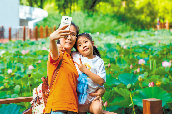 市民在城市公園里游玩打卡。 (本報(bào)資料片)