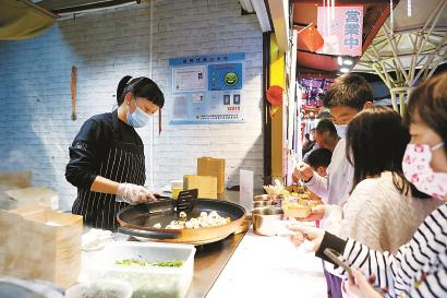 錦江樂(lè)園夜市中,顧客購(gòu)買章魚小丸子。 均本報(bào)記者 李茂君 攝