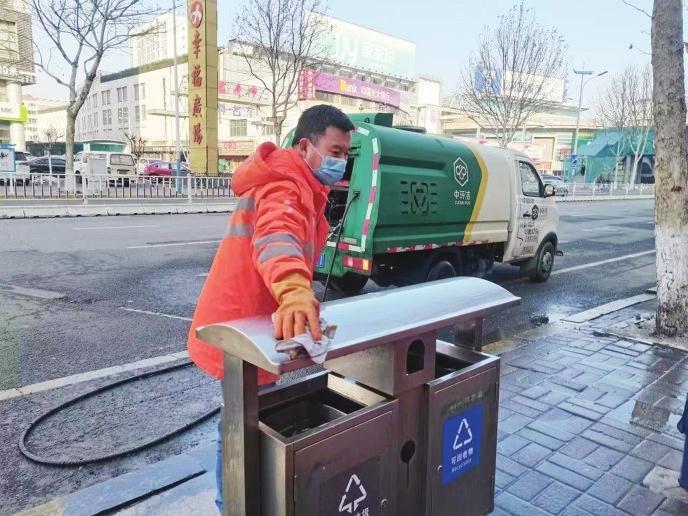 精細(xì)清洗,確保衛(wèi)生無(wú)死角。在只楚路,一抹橙色的身影蹲在垃圾箱旁,手里拿著抹布仔仔細(xì)細(xì)擦拭著垃圾箱。當(dāng)記者走近時(shí),保潔員孟凡榮指著垃圾箱的表面開心地告訴記者:“看,像家里的鏡子一樣,都能照出人影了??粗筛蓛魞舻睦?,我這心里也很美。”為保證大掃除全覆蓋,芝罘區(qū)環(huán)衛(wèi)中心督導(dǎo)兩家服務(wù)企業(yè)組織保潔員開展精細(xì)化擦拭,同時(shí)加大對(duì)垃圾點(diǎn)位周邊的沖洗力度,清除衛(wèi)生死角,確保垃圾箱及周邊干凈整潔。