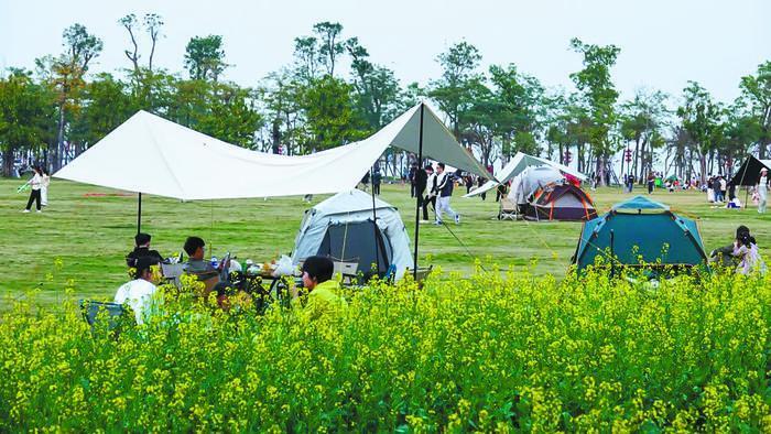 住房和城鄉(xiāng)建設(shè)部近日發(fā)布通知明確,將開展城市公園綠地開放共享試點,鼓勵各地增加可進入、可體驗的活動場地,完善配套服務(wù)設(shè)施。我國多地采取措施,試點城市公園綠地開放共享。圖為廣東省珠海市的市民在海天公園享受露營的樂趣。(陳康)