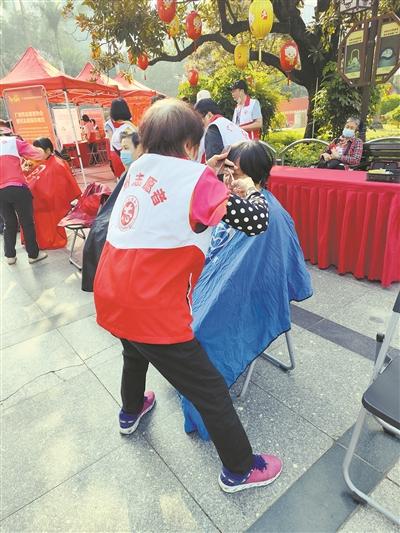 初老志愿者為市民提供義剪服務。記者 莫偉濃 攝
