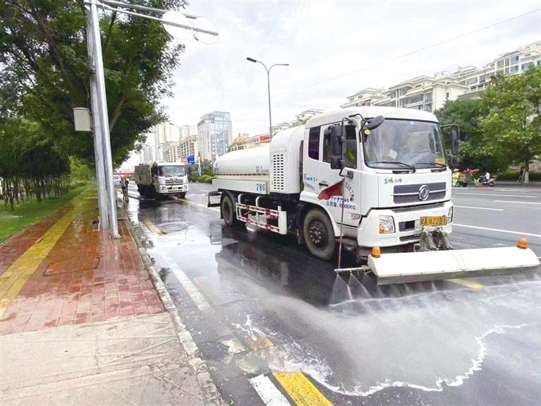 為持續(xù)鞏固全國文明城市創(chuàng)建成果,提升城市“顏值”,迎接即將到來的2023蘭州馬拉松,6月7日,蘭州市開展鐵路兩旁、公路兩側(cè)、河道兩岸等環(huán)境綜合整治工作,市城管委統(tǒng)籌力量、精心組織,用智能化手段持續(xù)開展以賽道為重點的市容環(huán)境綜合整治和氛圍營造工作。圍繞打造精致凈美城市、營造“一流”賽道,城管、林業(yè)、住建、工信、蘭州黃河風情線大景區(qū)等部門按照職能重點,對賽道全線的環(huán)境衛(wèi)生、市容秩序、綠地空株補栽、苗木整形修剪、綠雕盆景修復、樓頂樓宇“凈空”、建筑物外觀立面、基礎設施、市政設施等方面開展無死角整治。圖為安寧區(qū)環(huán)保部門清潔路面。(記者 張旭永)