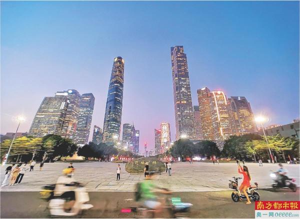 廣州各區(qū)中心城區(qū)公共休閑場地人群密集,電動自行車等具有動力裝置的滑行工具不規(guī)范使用的現(xiàn)象日益增多。圖是華燈初上的花城廣場。陳健明 攝