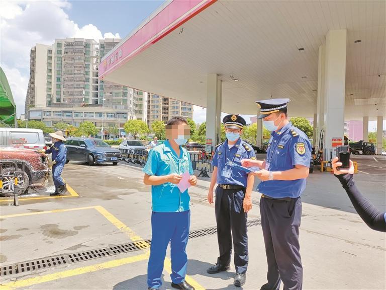 龍華區(qū)觀湖街道執(zhí)法人員發(fā)放整改文書(shū)。