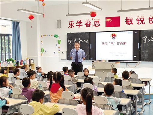 吉首市檢察院“啟明工作室”檢察官李啟明給同學們上法治教育課。