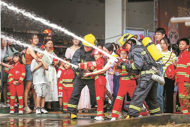 孩子們體驗(yàn)當(dāng)“消防員”