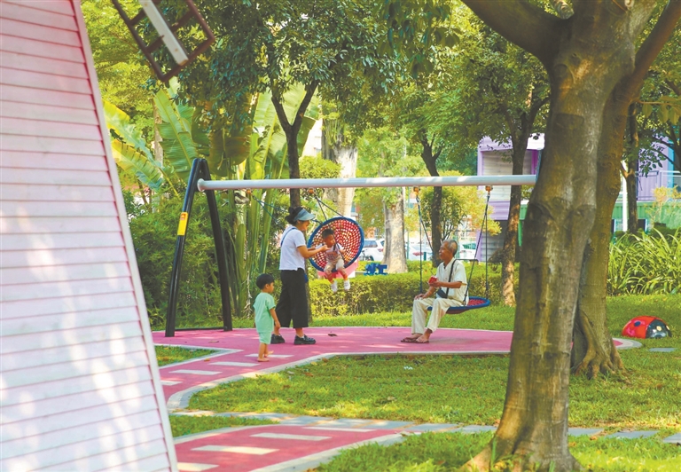 在全域推進“四小園”建設(shè)的過程中,除了提升改造環(huán)境和景觀,南城多個社區(qū)還通過完善基礎(chǔ)設(shè)施配套,豐富“四小園”多元功能。通過增設(shè)運動球場、健身器材、休憩坐凳、滑滑梯等設(shè)施,讓市民在家門口就能享用全齡共享的可休息、可交流、可健身的高品質(zhì)綠色共享空間。(記者 李直建 通訊員 南城宣)