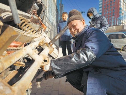 萬泉莊南社區(qū),修車師傅幫居民維修車輛,為大家提供暖心的便民服務(wù)??茕瓟z