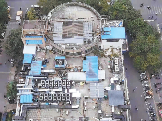 11月30日,記者來到百環(huán)家園18號(hào)樓,從居民樓向西俯瞰,商務(wù)小樓上雜亂的管道和設(shè)備排布已經(jīng)有了明顯改觀。
