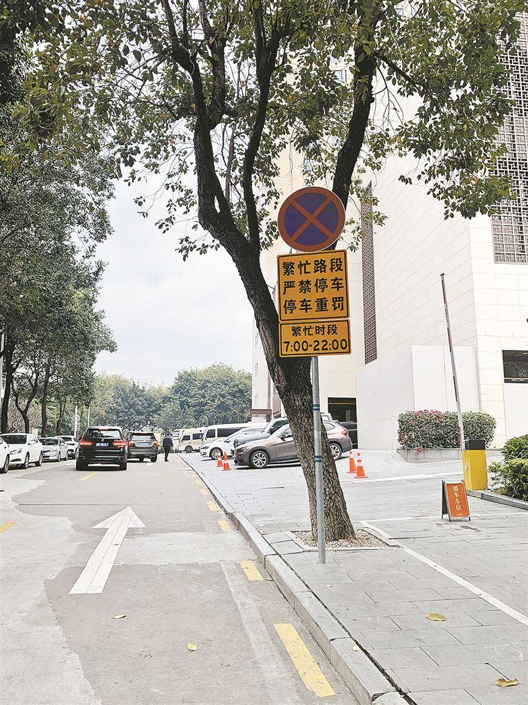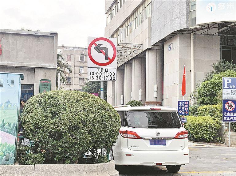 老年大學(xué)斗西路車庫出口增設(shè)限時段禁止左轉(zhuǎn)標識。