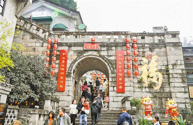 2月14日,游客在重慶市南岸區(qū)龍門浩老街游覽。新華社發(fā)