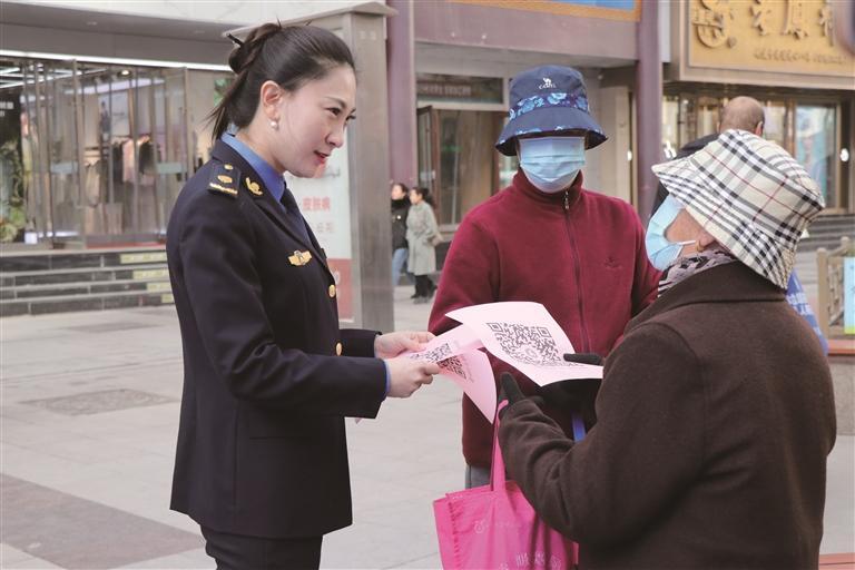 市城管委數(shù)字中心負(fù)責(zé)人向市民宣傳微信“隨手拍”
