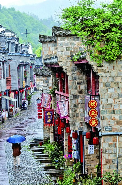 居民走在福建泰寧縣尚書(shū)巷歷史文化街區(qū)。