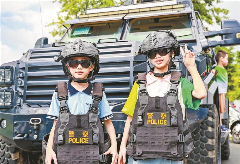 本次開放日活動分設(shè)南北兩個廣場,主要包括群眾安全感滿意度工作展、警隊典型人物展、警務(wù)科技展、警務(wù)技能現(xiàn)場表演、政法宣傳等互動體驗展區(qū),設(shè)置拍照簽到、光警故事、游戲互動、舞臺表演、裝備展示、宣傳品兌換等6大板塊,通過警用裝備展示、警務(wù)實戰(zhàn)演練、體驗互動、留影打卡等諸多活動形式,讓市民親身體驗了解公安工作,掌握各類安全防范知識和技能。