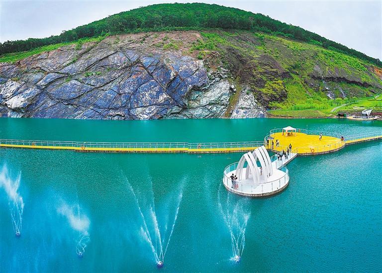 7月27日拍攝的黑龍江省寶清縣翡翠湖礦坑公園。當(dāng)?shù)貙?shí)行“生態(tài)綜合修復(fù)+衍生產(chǎn)品植入”的發(fā)展模式,把滿目瘡痍的礦坑及周邊區(qū)域打造成特色生態(tài)休閑公園,激發(fā)旅游產(chǎn)業(yè)潛能。許叢軍 攝(中經(jīng)視覺)