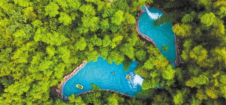 7月11日,浙江省湖州市吳興區(qū)紅里山村,游客在體驗(yàn)漂流項(xiàng)目。近年來(lái),該區(qū)積極推進(jìn)礦山生態(tài)修復(fù),依托現(xiàn)有林地、草坪、礦坑等自然資源,打造集親水體驗(yàn)、山地越野、拓展研學(xué)于一體的生態(tài)旅游綜合體。何偉衛(wèi) 攝(中經(jīng)視覺)