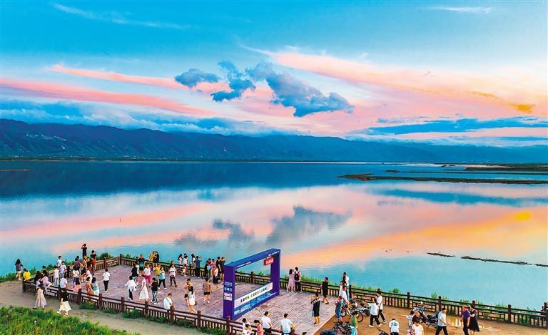 7月19日,山西省運(yùn)城市鹽湖風(fēng)光秀美,吸引各地的游客紛至沓來(lái)。近年來(lái),該市不斷加大“退鹽還湖”“還湖于民”生態(tài)修復(fù)力度,把鹽湖從礦區(qū)、工業(yè)區(qū)變?yōu)樯鷳B(tài)保護(hù)區(qū)。閆鑫 攝(中經(jīng)視覺)