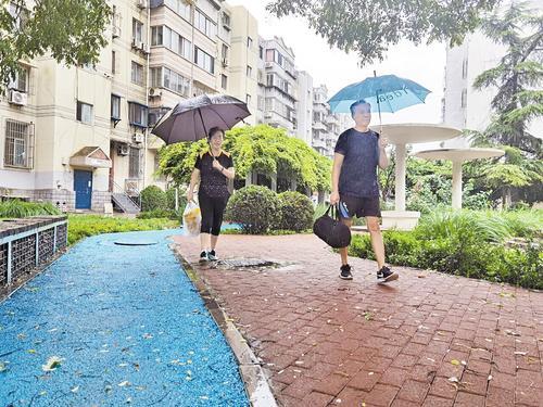 8月26日,唐山高新區(qū)龍悅新居小區(qū)居民雨中出行,海綿化改造后的小區(qū)甬路無積水、不濕鞋。記者 王育民 攝