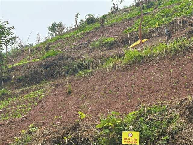 11月4日,在大渡口區(qū)九宮廟金地格林春岸小區(qū)二期,記者看到,對(duì)面約幾百米長(zhǎng)的山坡,多數(shù)被開墾,種上了當(dāng)季蔬菜。城市一隅,種菜帶來(lái)的土地裸露、原生植被開挖、白色垃圾、異味等問(wèn)題,多少有些煞風(fēng)景。坡地上有提示牌寫著“國(guó)有土地,嚴(yán)禁耕種”字樣。有種菜的居民告訴記者,雖然看到了相應(yīng)提示,但他認(rèn)為與其讓土地荒廢,不如利用起來(lái)。