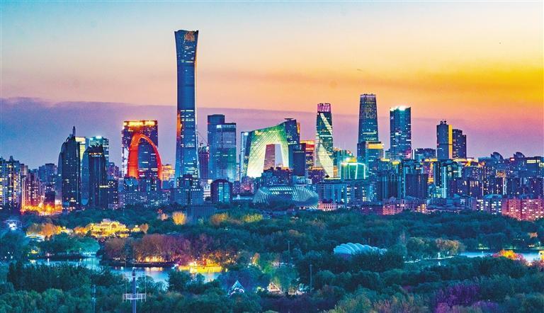 11月3日,北京商務(wù)中心區(qū)燈火璀璨,繁華的都市樓宇和相鄰的朝陽(yáng)公園構(gòu)成了一幅美麗的畫(huà)卷。