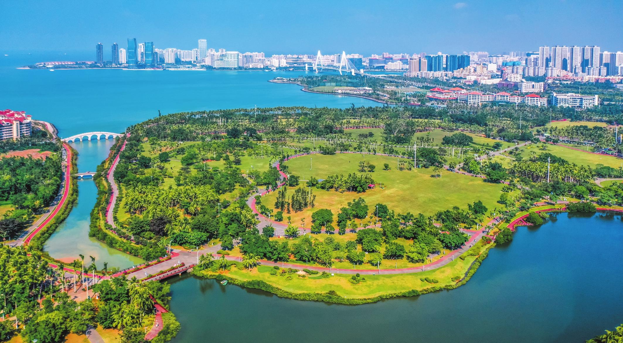 在萬綠園健身長廊,紅色的塑膠跑道在椰子樹下向海邊延伸,跑道兩旁矗立著各種健身器材,隨處可見市民游客在此享受運動健身的快樂?!敖衲旯珗@增加了很多健身器材,大家鍛煉起來更加方便了?!薄昂蝤B”老人孫秀苒經(jīng)常到萬綠園鍛煉,她認(rèn)為新器材靈活、好用,對老年人更加友好。
