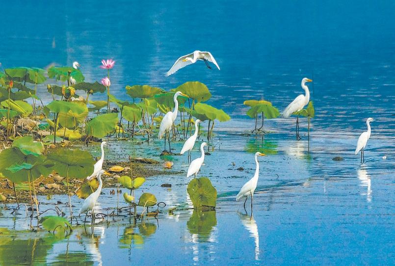 河北雄安新區(qū):劃定9個(gè)鳥類重要棲息地,劃定重點(diǎn)區(qū)域?yàn)榻麧O區(qū);淀區(qū)野生鳥類286種、大型水生植物47種、浮游植物406種、底棲生物38種;國(guó)家一級(jí)保護(hù)動(dòng)物、全球極瀕危物種青頭潛鴨在此棲息……白洋淀生態(tài)系統(tǒng)多樣性、穩(wěn)定性、持續(xù)性已得到顯著提升。