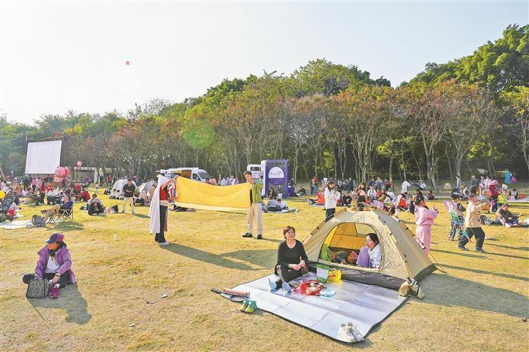 春節(jié)假期,市民在蓮花山公園露營,享受陽光。記者 嚴文婷 攝