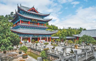 “一座土司府,半部民族史”。木府萬卷樓前的這10個字,將邊地古城各民族交往交流交融的故事娓娓道來。獅子山拱衛(wèi)、護(hù)城河縈繞,木府的選址與布局十分講究。作為麗江木氏土司府的衙署,木府始建于明代,后來歷經(jīng)多次擴(kuò)建和修繕,形成了現(xiàn)有的建筑群布局,議事廳、萬卷樓、護(hù)法殿等沿中軸線依次排開。歷經(jīng)400多年風(fēng)雨的木府,作為麗江古城的重要文化地標(biāo),聆聽著各民族百川匯流向前的歷史回響。