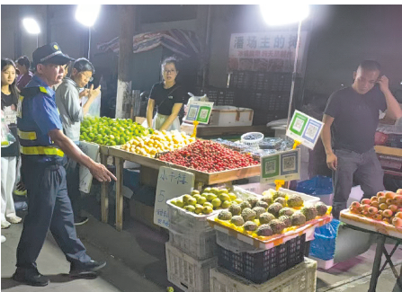 當(dāng)晚,執(zhí)法人員來到城凰夜市,看到少數(shù)攤販將攤位擺出規(guī)定場地之外,對交通造成影響。執(zhí)法人員上前表明身份,耐心勸導(dǎo)經(jīng)營者在規(guī)定區(qū)域內(nèi)經(jīng)營,同時進行現(xiàn)場普法宣傳。經(jīng)過勸導(dǎo),經(jīng)營者配合執(zhí)法人員工作,將物品移至規(guī)定區(qū)域。
