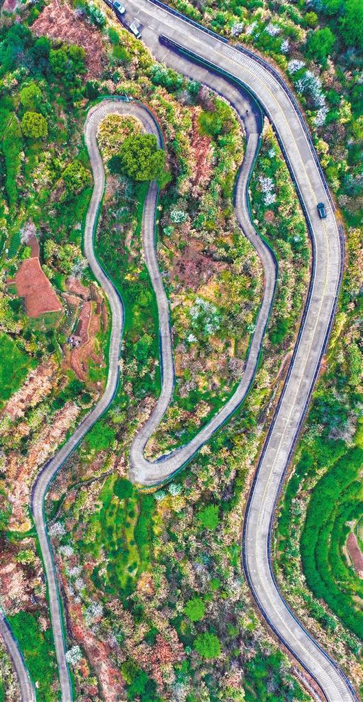 3月30日拍攝的浙江臺州市三門縣亭旁鎮(zhèn)至橫渡鎮(zhèn)枧頭盤山公路。該縣已實現(xiàn)“村村通公路、村村通公交”。林利軍攝(中經(jīng)視覺)