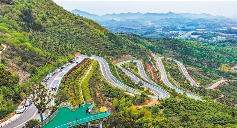 4月4日,游客在安徽合肥市廬江縣礬山鎮(zhèn)農(nóng)村公路“六道拐”路段觀光。巢志斌攝(中經(jīng)視覺)