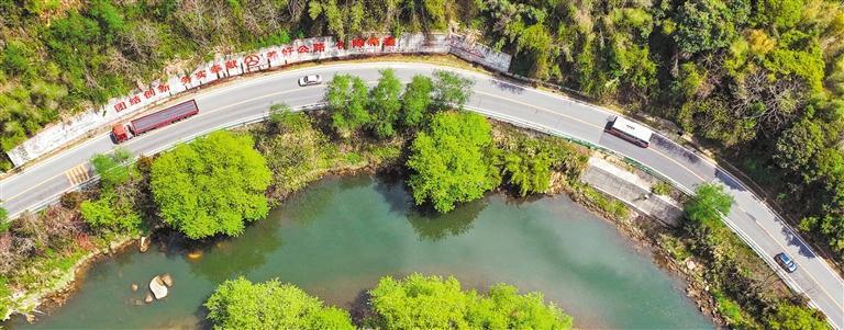 4月3日,江西宜春市宜豐縣黃崗鎮(zhèn),平坦整潔的農(nóng)村公路與樹木、河流相互映襯。周亮攝(中經(jīng)視覺)