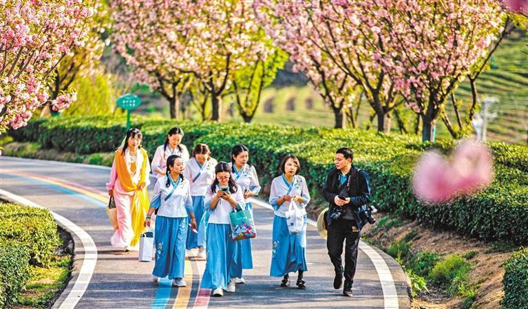4月6日,湖北十堰市竹山縣山水茶園步道,游客在茶園觀光休閑。章磊攝(中經(jīng)視覺)
